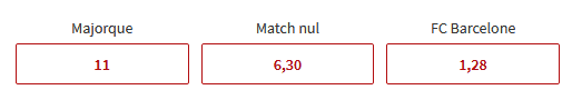 Si vous jouez la Victoire de Majorque + la Victoire de FC Barcelone, vous touchez 1,10 fois la mise.