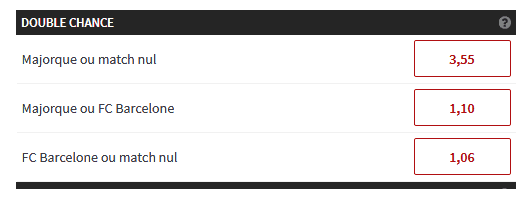 Si vous jouez le FC Barcelone + le match nul, vous touchez 1,06 fois la mise.