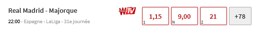 Les sites de Paris Sportifs vous proposent jusqu'à 78 paris sophistiqués — voir par exemple sur Winamax le Match Real Madrid - Majorque :