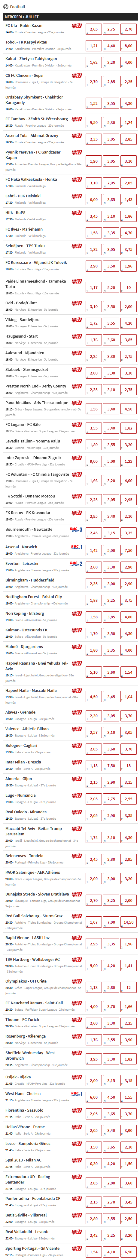 Exemples réels sur les 63 Matchs de Foot du Mercredi 1er Juillet tels que le site Winamax les publie :